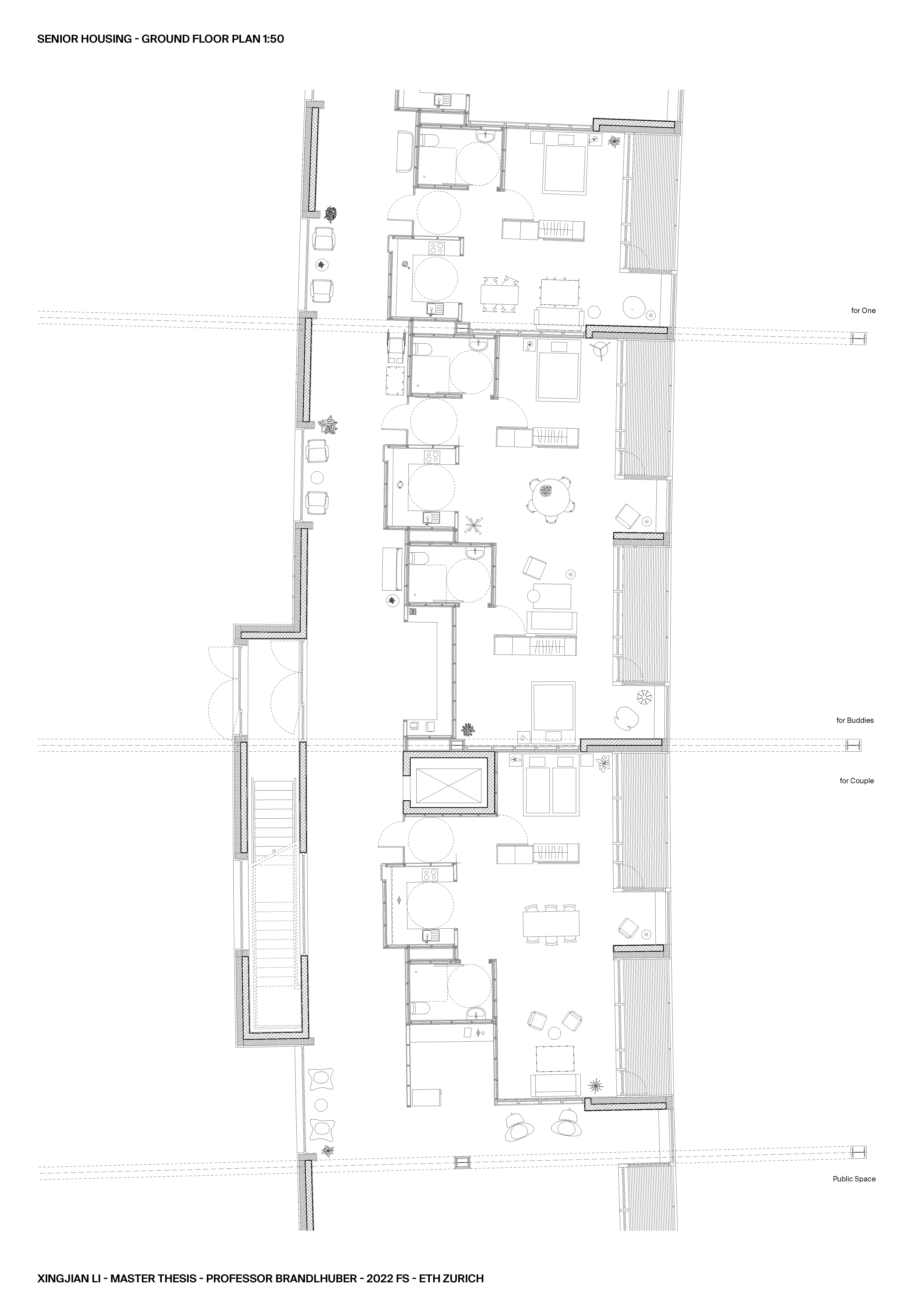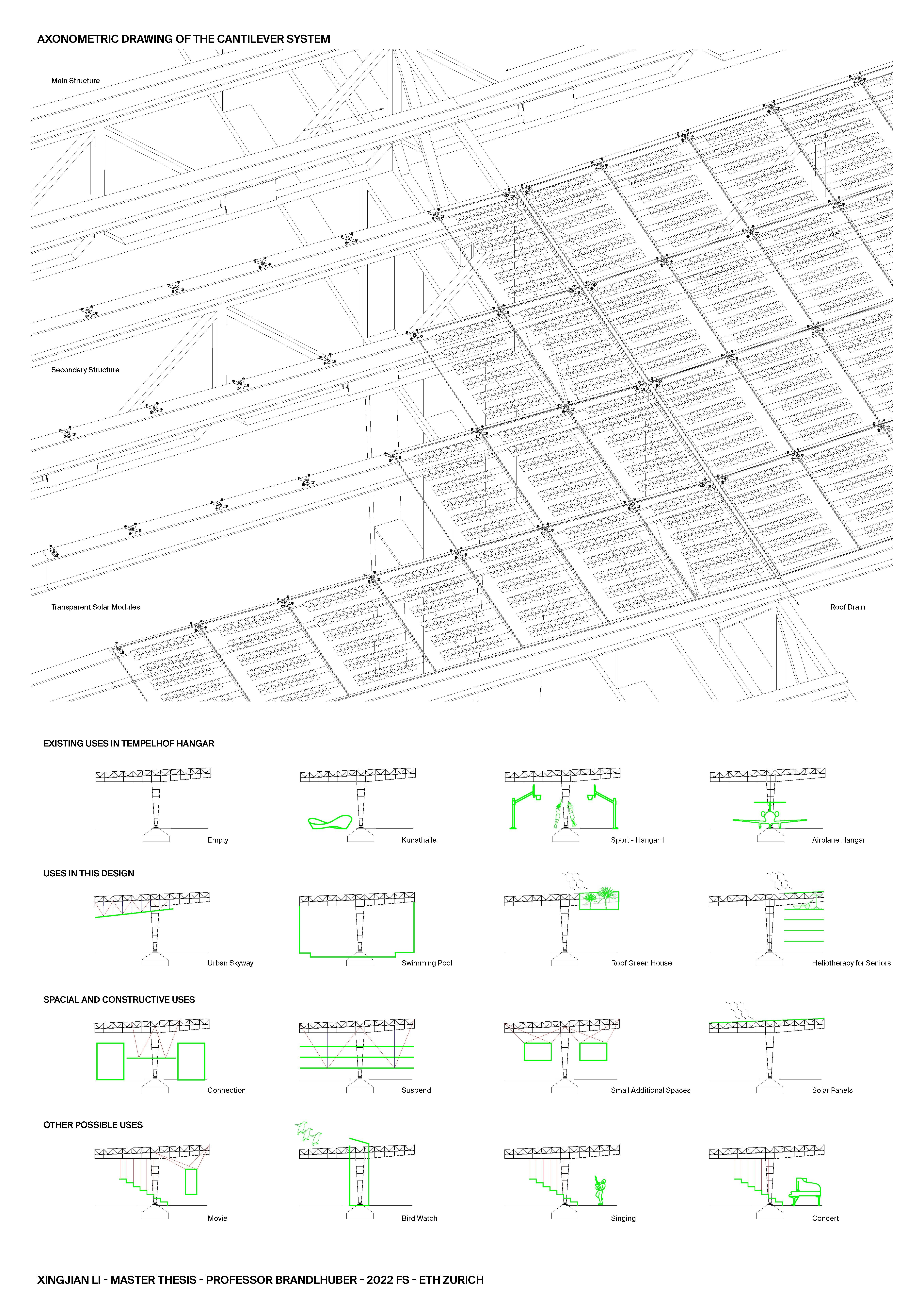 The project is providing a transit space for the “Senior” architecture and community in Berlin that need to transition. This would be made possible by the existing large span structure of the hangar and the infrastructure that exists underground.